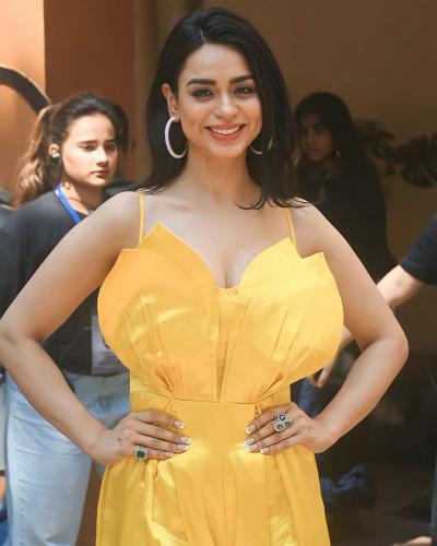 सौंदर्या शर्मा अपने लुक को ग्लोइंग मेकअप और ओपन हेयर स्टाइल से कम्पलीट किया है और इसके साथ हाथों में गोल्डन कड़ा पहन रखा हैं। (फोटो: इंस्टाग्राम)