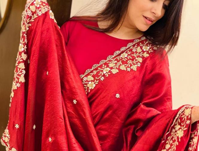 दीपिका कक्कड़ रेड ड्रेस में बेहद खूबसूरत अंदाज में नजर आ रही हैं। (फोटो: इंस्टाग्राम)