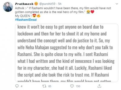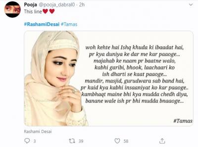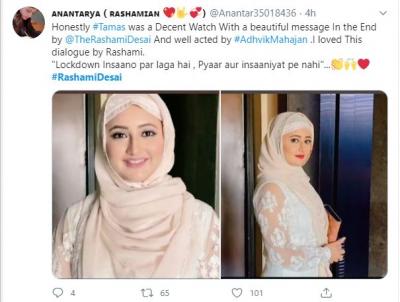 आज रश्मि देसाई और आधविक महाजन की शॉर्ट फिल्म 'तमस' रिलीज हो गई है। (फोटो सोर्स-ट्विटर)