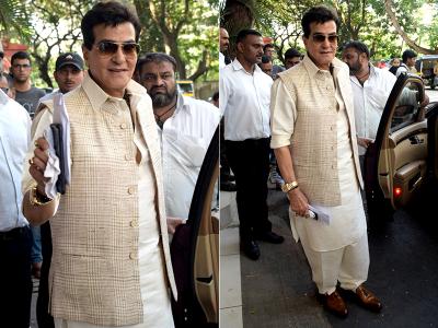 जितेंद्र ट्रेडिशनल लुक में कुरते और हाफ जैकेट में आए नजर।