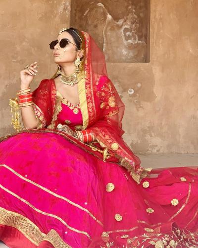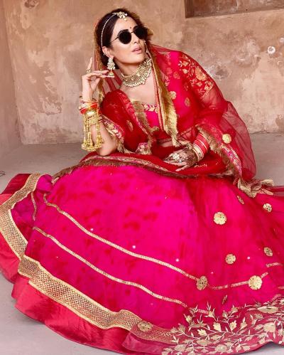 दुल्हन बनीं हिना खान, लाल लहंगा और काला चश्मा पहन दिखाया स्वैग, see pics