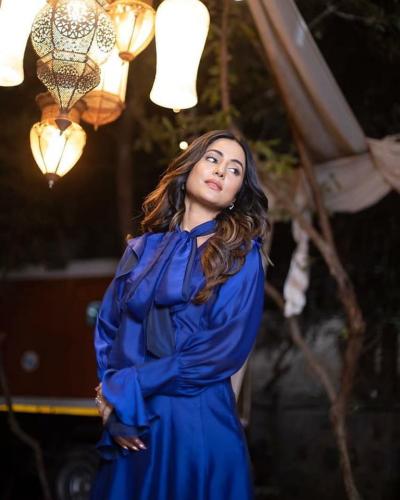 हिना खान ने ब्लू ड्रेस में शेयर की ग्लैमरस तस्वीरें, सोशल मीडिया पर हुईं वायरल