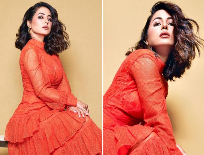 हिना खान ने ऑरेंज कलर की ड्रेस में कराया ग्लैमरस फोटोशूट, चेयर पर बैठ दिए एक से बढ़कर एक पोज