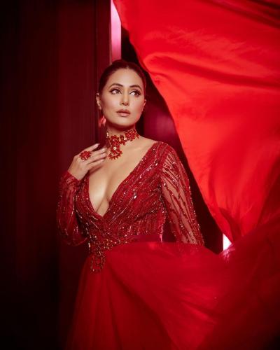 हिना खान ने रेड लहंगे में दिखाया ग्लैमरस अवतार, सोशल मीडिया पर तस्वीरें हुईं वायरल