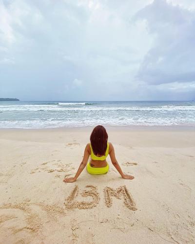 जेनिफर ने इंस्टाग्राम पर 13 मिलियन फॉलोअर्स होने की खुशी पर रेत पर 13 मिलियन लिखकर अपनी खुशी का इजहार किया हैं। (फोटो: इंस्टाग्राम)