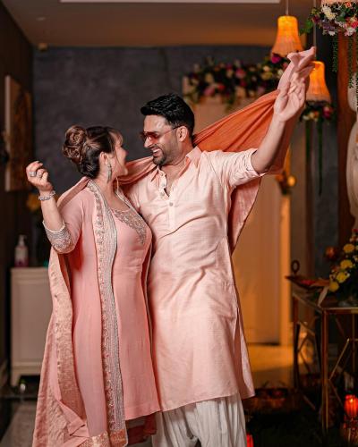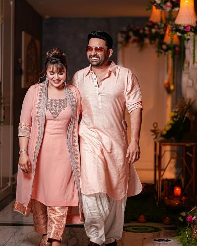इन तस्वीरों में कपिल लाइट पिंक कलर का कुर्ता पायजामा पहना हुआ हैं। वहीं गिन्नी भी सेम कलर के आउटफिट पहने हुए काफी खूबसूरत लग रही हैं। (फोटो: इंस्टाग्राम)