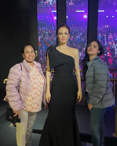 तस्वीर में सुमोना मैडम तुसाद म्यूजियम में हॉलीवुड एक्ट्रेस एंजेलिना जोली के स्टैचू के साथ पोज़ देती नजर आ रही हैं। (फोटो: इंस्टाग्राम)
