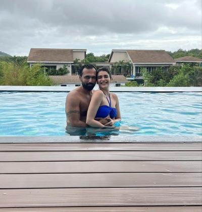 Karishma Tanna: पति संग पूल में रोमांटिक हुईं करिश्मा तन्ना, ब्लू स्विमवियर में शेयर की तस्वीरें