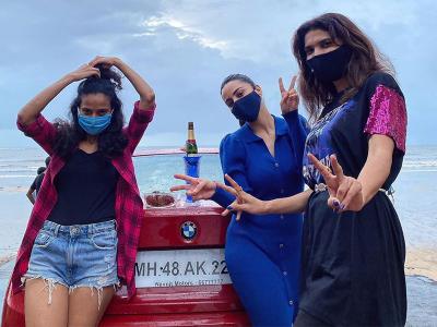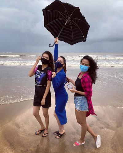 इन तस्वीरों में श्रद्धा और उनकी फ्रेंड्स ने मास्क पहना हुआ है। (फोटो: इंस्टाग्राम)