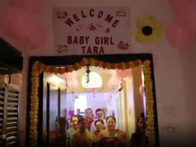 घर में तारा का पहला स्वागत करते रिश्तेदार नजर आ रहे हैं। (फोटो: इंस्टाग्राम)