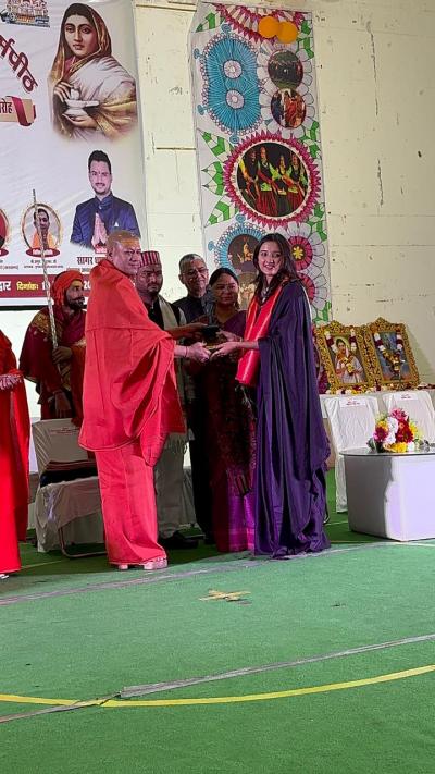 मॉडल व अभिनेत्री नेहा रावत को देवभूमि उत्तराखण्ड में सम्मानित किया गया है । नेहा रावत को यह सम्मान निरंजन पीठाधीश्वर श्री श्री 1008 आचार्य महामंडलेश्वर स्वामी कैलाशनन्द गिरी जी महाराज के द्वारा किया गया। (फोटो- इंस्टाग्राम)