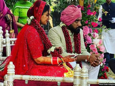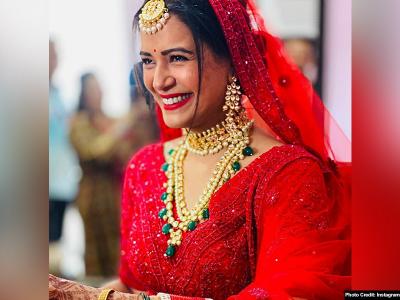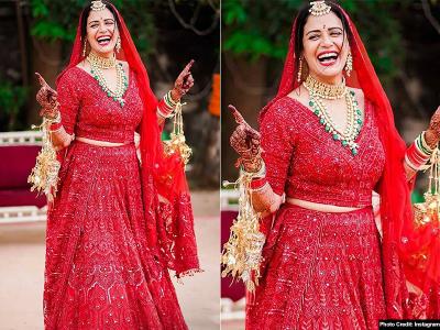 मोना अपनी शादी में लाल रंग के लहंगे में नजर आईं। इस दौरान वह काफी खूबसूरत लग रही थीं।