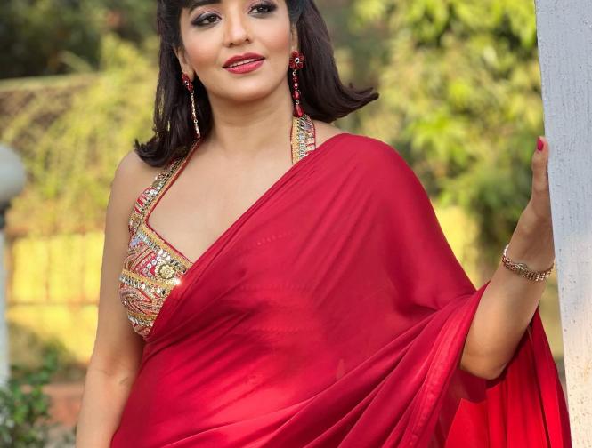 मोनालिसा ने मेहरून साड़ी में दिखाया ग्लैमरस अंदाज, डीप नेक ब्लाउज में दिए पोज, देखें तस्वीरें