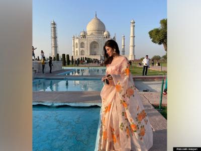 मौनी रॉय ने किया ताजमहल का दीदार, गुलाबी साड़ी में दिखा स्टाइलिश अंदाज, देखें खूबसूरत तस्वीरें