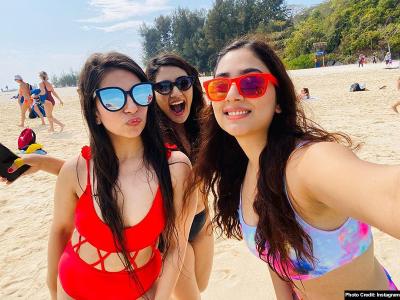 कुछ तस्वीरों में दिशा परमार अपनी कुछ दोस्तों के साथ बीच पर सेल्फी लेती नजर आ रही हैं।