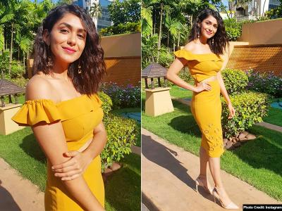 येल्लो कलर की इस ड्रेस में मृणाल बेहद खूबसूरत नजर आ रही हैं।