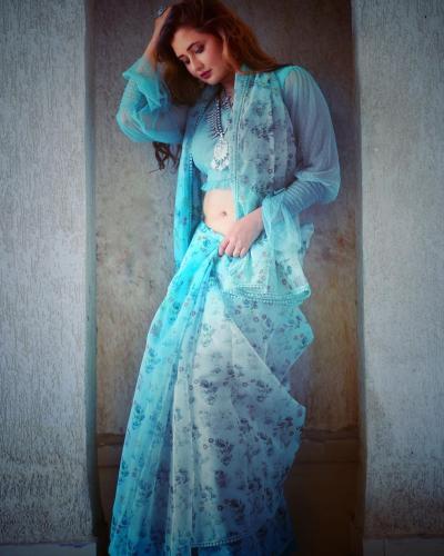 रश्मि का लेटेस्ट ट्रेडिशनल लुक जिसमें रश्मि लाइट ब्लू साड़ी में नजर आ रही हैं, सोशल मीडिया पर काफी वायरल हो रहा है। (फोटो: इंस्टाग्राम)