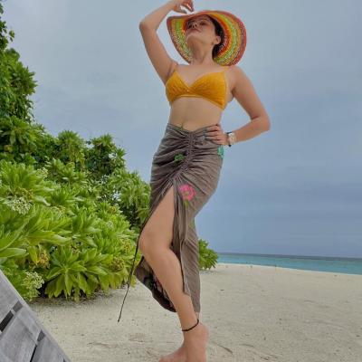 इन फोटोज में रुबीना दिलैक पीले कलर की बिकिनी में पोज देती नजर आ रही हैं। (फोटो इंस्टाग्राम)