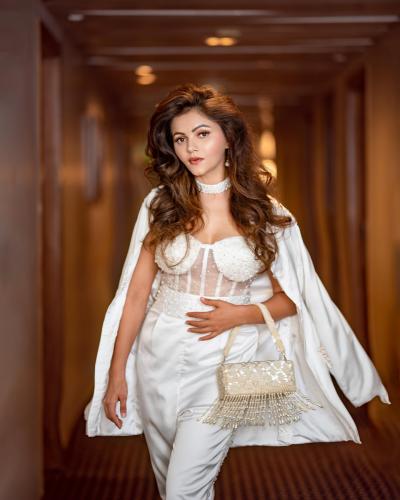 इन फोटोज़ में रुबीना ने व्हाइट ट्रांसपेरेंट टॉप के साथ सफेद रंग का ही कोट पहना है और इसके साथ मैचिंग पैंट्स कैरी किया हैं। (फोटो: इंस्टाग्राम)