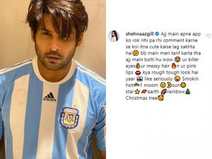 1 / 7शहनाज गिल और सिद्धार्थ शुक्ला को लोग बिग बॉस 13 के बाद भी काफी पसंद कर रहे हैं। 2 / 7 शो में इनकी जोड़ी को इतना प्यार मिला था कि लोगों ने दोनों की जोड़ी का नाम सिडनाज तक रख दिया था। 3 / 7 शो में शहनाज ने कई बार सिद्धार्थ को अपने दिल की बात बताई थी, लेकिन सिद्धार्थ ने हर बार शहनाज को बस एक दोस्त ही बताया। 4 / 7सिद्धार्थ शुक्ला ने हाल ही में सोशल मीडिया पर अपनी एक तस्वीर पोस्ट की है। जिस पर कमेंट करने से शहनाज खुद को रोक नहीं सकीं। 5 / 7सिद्धार्थ की तस्वीर पर शहनाज ने बेहद प्यार भरा अंदाज में कमेंट किया। 6 / 7शहनाज ने लिखा, 'आज मैं अपने आप को रोक नहीं पा रही कमेंट करने से। कोई इतना क्यूट कैसे लग सकता है। बिग बॉस में मेरी तारीफ करता था, आज मैं बोलती हूं....किलर आंखों, बिखरे बाल और तेरे पिंक होंठ क्या रफ लुक है यार...बहुत हॉट'।7 / 7शहनाज अक्सर सिद्धार्थ की तारीफ करती रहती हैं। सोशल मीडिया पर शहनाज के इस कमेंट्स के बाद फैंस के बीच चर्चाओं का माहौल गर्म है।