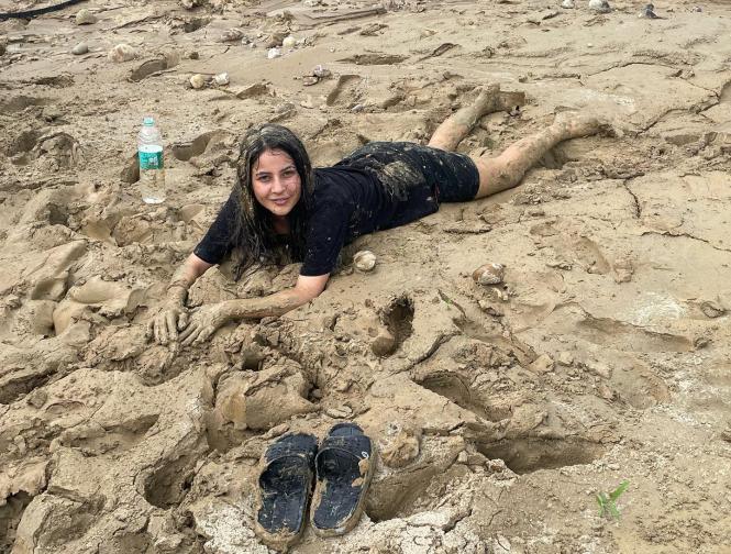 इन तस्वीरों में शहनाज कीचड़ में लेटकर, बैठकर फोटो खिंचवा रही हैं। (फोटो: इंस्टाग्राम)