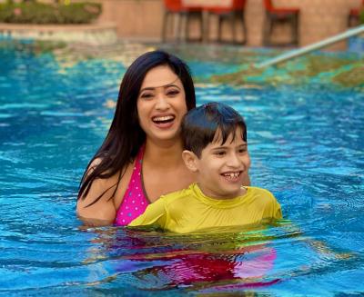 इन तस्वीरों में श्वेता तिवारी अपने बेटे के साथ पूल में मस्ती करती हुई दिखाई दे रही हैं। (फोटो: इंस्टाग्राम)