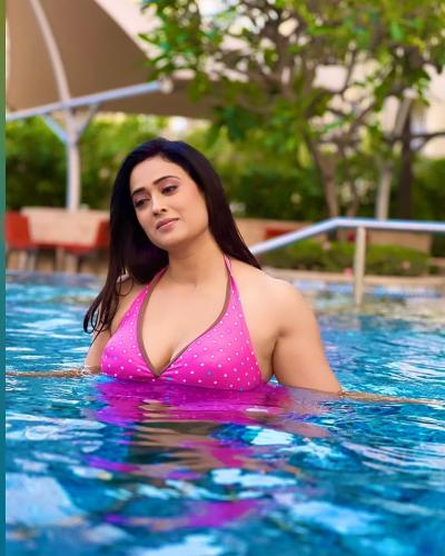 तस्वीरों में श्वेता पिंक कलर की बिकिनी में बोल्ड अंदाज में पोज देती नजर आ रही हैं। (फोटो: इंस्टाग्राम)