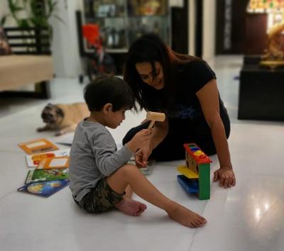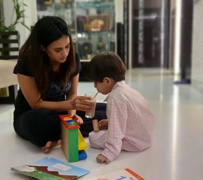 श्वेता तिवारी अपने बेटे के साथ पेंटिंग करती नजर आईं।