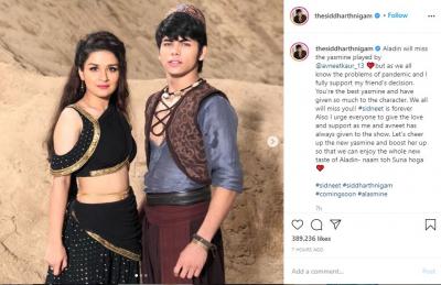 सिद्धार्थ ने अपने इंस्टाग्राम अकाउंट पर अवनीत के साथ तस्वीरें शेयर करते हुए लिखा, 'अलादीन को अवनीत कौर द्वारा निभाई गई यासमीन की याद आएगी, लेकिन जैसा कि हम सभी कोरोना वायरस के कारण पैदा हुईं समस्याओं को जानते हैं। ऐसे में मैं अपने मित्र के फैसले का पूरा समर्थन करता हूं।' (फोटो सोर्स- इंस्टाग्राम)