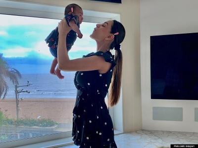 इन तस्वीरों में स्मृति खन्ना अपनी रोती हुई बेटी को चुप कराती नजर आ रही है।