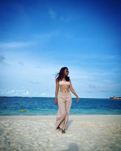 इन फोटोज में सुरभि ज्योति ब्लैक कलर की ब्रा पहने हुए नजर आ रही हैं। (फोटो: इंस्टाग्राम)