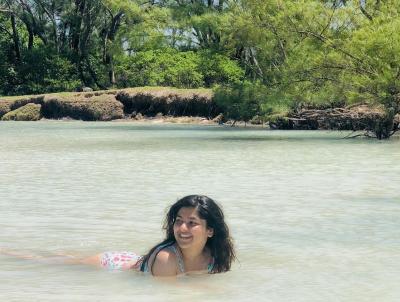 समंदर किनारे पानी में एक्ट्रेस निधि भानुशाली जमकर एन्जॉय करती नजर आ रही हैं। (फोटो: इंस्टाग्राम)