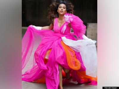 निया शर्मा पिंक कलर की गाउन पहने दिख रही हैं, जिसमें वाइट और ऑरेंज कलर की लेयर्स भी नजर आ रही हैं।