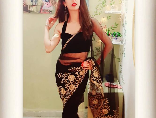 इन फोटोज में ऐश्वर्या सखुजा ब्लैक कलर की साड़ी में बेहद खूबसूरत अंदाज में नजर आ रही हैं। (फोटो: इंस्टाग्राम)