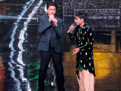 इंडियन आइडल के मंच पर शाहरुख खान गाना गाते भी नजर आए।