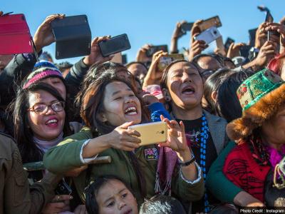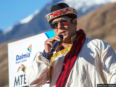 सलमान यहां पर नीली टीशर्ट के ऊपर पारंपरिक मोंपा जैकेट पहने नजर आए