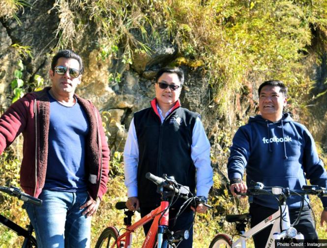 केंद्रीय मंत्री किरन रिजिजू और अरुणाचल प्रदेश के मुख्यमंत्री पेमा खांडू संग सलमान ने चलाई साइकिल