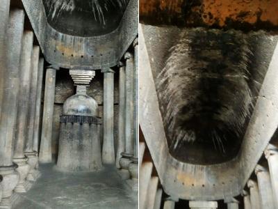 गुफाओं के अन्दर बने विशाल खंभे और स्तूप आपको इतिहास की याद दिलाएंगे।