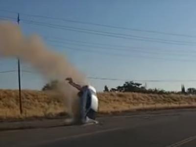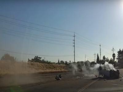 इसके शेयर करते हुए कैप्शन में लिखा गया है कि शॉकिंग क्रैश में कैलिफोर्निया के हाईवे 99 पर एक कार कूद गई। साथ ही इसे डरावनी घटना बताया गया है।