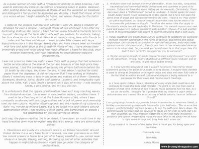 बताया गया है कि टॉयलेट की दीवारों पर काली देवी, सरस्वती मां और गणेश भगवाग की तस्वीरें लगी थीं, जिसके बाद अंकिता ने पब को ईमेल कर इसका विरोध जताया।