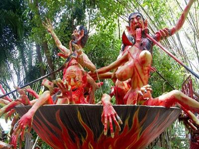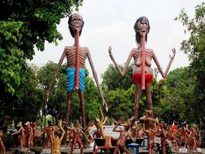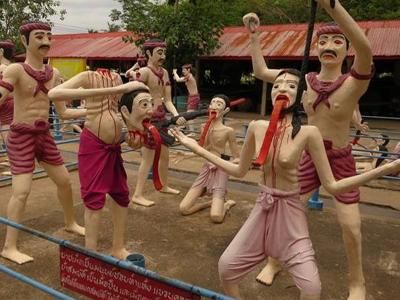 थाईलैंड के इस मंदिर में थोडा प्रभाव आपको हिंदू धर्म के जैसा भी देखने को मिलेगा, जी हाँ गरुड़ पुराण के अनुसार किसी व्यक्ति की मुत्यु के बाद उसके पापों के आधार पर 28 तरह के अलग-अलग सजा का वर्णन किया गया है।