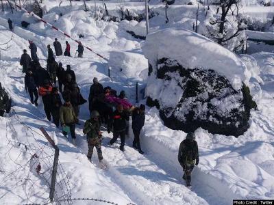 जम्मू-कश्मीर में एक गर्भवती महिला को अस्पताल ले जाने के लिए जवान तकरीबन चार घंटों तक बर्फ पर चलते रहें।