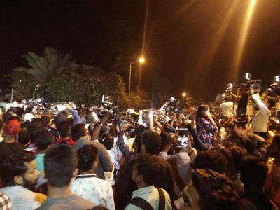 सलमान ने लेल से छूटने के बाद अपने फैंस से रूबरू होने आए तो तीन उंगलियां दिखाकर इशारा किए।