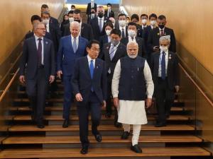 1 / 7एक तस्वीर अपने आप हजारों शब्दों को बयां करती है। दरअसल, जब क्वाड समिट के लिए प्रधानमंत्री नरेंद्र मोदी और अमेरिका, जापान और ऑस्ट्रेलिया के शीर्ष नेता जापान की राजधानी टोक्यो में एकत्र हुए तो सीढ़ियों से नीचे चलते हुए अन्य नेताओं के साथ पीएम मोदी की एक तस्वीर सामने आई।(Photo Credit: Twitter)2 / 7इस तस्वीर में पीएम मोदी सबसे आगे चल रहे हैं। उनके साथ जापान के पीएम फुमियो किशिदा हैं। जबकि यूएस के राष्ट्रपति जो बाइडेन और ऑस्ट्रेलिया के नए प्रधानमंत्री एंथनी अल्बनीज पीछे चल रहे हैं। इस तस्वीर को सोशल मीडिया पर बीजेपी नेताओं के द्वारा शेयर किया जा रहा है। (Photo Credit: Twitter)3 / 7भाजपा के अमित मालवीय ने ट्विटर पर तस्वीर को कैप्शन के साथ साझा किया: 'दुनिया का नेतृत्व ... एक तस्वीर एक हजार शब्दों को बयान करती है'। (Photo Credit: Twitter)4 / 7वहीं बीजेपी के प्रवक्ता संबति पात्रा ने इस तस्वीर को शेयर करते हुए कैप्शन दिया है- विश्व गुरु भारत! (Photo Credit: Twitter)5 / 7बीजेपी नेता स्मृति ईरानी ने अपने ट्विटर अकाउंट पर फोटो शेयर करते हुए लिखा, 'प्रधान सेवक - राह जानता है, राह में जाता है, रास्ता दिखाता है।' (Photo Credit: Twitter)6 / 7महाराष्ट्र के पूर्व मुख्यमंत्री देवेंद्र फडणवीस ने भी पीएम मोदी की यह तस्वीर को साझा करते हुए उन्हें- 'वैश्विक नेता' बताया है। (Photo Credit: Twitter)7 / 7आपको बता दें कि क्वाड शिखर सम्मेलन में भारत, अमेरिका, जापान और ऑस्ट्रेलिया के शीर्ष नेता जापान की राजधानी टोक्यों में मिले। जहां पर हिंद-प्रशांत क्षेत्र की शांति, सुरक्षा समृद्धि और विकास के मुद्दे पर चर्चा हुई। (Photo Credit: Twitter)