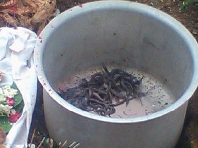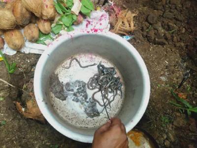 इन सांपों को लोगों ने भगवान भोलेनाथ का अवतार समझ एक पतीले में रखकर पूजा की। गांव वालों ने पूजा-पाठ सारे नियमों के साथ की। सांपों को देखने के लिए लोगों ने भीड़ लगा दी थी।