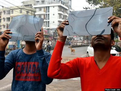 भारत में इन अजब-गजब तरीकों से देखा गया सूर्य ग्रहण, देखें मजेदार तस्वीरें