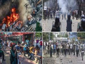 1 / 10बांग्लादेश हिंसा की आग में जल रहा है। हसीना सरकार की विवादास्पद कोटा प्रणाली के खिलाफ हिंसक विरोध प्रदर्शनों में लगभग 300 लोग मारे गए हैं। 2 / 10हसीना के इस्तीफे के बाद बांग्लादेश में अंतरिम सरकार का गठन हो गया है। डॉ. सलीमुल्लाह खान और डॉ. आसिफ नजरूल के नेतृत्व में नई अंतरिम सरकार शीघ्र ही बांग्लादेश को चलाएगी।3 / 10बांग्लादेश में जारी हिंसक प्रदर्शनों के बाद शेख हसीना प्रधानमंत्री पद से इस्तीफा देकर देश छोड़ चुकी हैं। बांग्लादेश के सेना प्रमुख ने कहा है कि सेना कानून व्यवस्था की जिम्मेदारी संभालेगी।4 / 10हजारों प्रदर्शनकारियों ने ढाका में उनके आधिकारिक आवास गणभवन पर धावा बोल दिया। हसीना और उनकी बहन शेख रेहाना 'सुरक्षित आश्रय' के लिए रवाना हुईं। 5 / 10खबर आई है कि बांग्लादेश में बड़े पैमाने पर सरकार विरोधी प्रदर्शनों के बाद प्रधानमंत्री पद से इस्तीफा दे चुकीं शेख हसीना लंदन रवाना हो चुकी हैं। 6 / 10कोटा मुद्दे पर कई सप्ताह तक विरोध प्रदर्शन झेलने के बाद देश के सेना प्रमुख जनरल वकार-उज-जमान ने सोमवार को घोषणा की कि बांग्लादेश में अंतरिम सरकार चलेगी।7 / 10बांग्लादेश के सेना प्रमुख वकर-उज-जमान ने कहा कि हम देश में शांति बहाल करेंगे। हम नागरिकों से हिंसा रोकने का अनुरोध करते हैं। हम पिछले कुछ हफ्तों में हुई सभी हत्याओं की जांच करेंगे। 8 / 10सोशल मीडिया पर ऐसे वीडियो सामने आए, जिनमें हसीना के आधिकारिक आवास में घुसे प्रदर्शनकारियों को घर के अंदर का खाना खाते हुए दिखाया गया।9 / 10सेना प्रमुख ने प्रदर्शनकारियों से कहा, 'तोड़फोड़-आगजनी मारपीट से दूर रहिए। आप लोग हमारे साथ मिलकर चलेंगे, तो हालात सुधरेंगे। मारपीट हिंसा से कुछ नहीं मिलेगा। संघर्ष और अराजकता से दूर रहिए।' 10 / 10जब प्रदर्शनकारियों ने अपना 'ढाका तक लंबा मार्च' शुरू किया, तब सेना प्रमुख सेना मुख्यालय में सत्तारूढ़ अवामी लीग और विपक्षी बीएनपी सहित विभिन्न राजनीतिक दलों के नेताओं और अन्य हितधारकों के साथ बातचीत कर रहे थे।