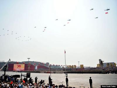चीन ने मंगलवार को साम्यवादी शासन की 70वीं वर्षगांठ मनायी। इस मौके पर बढ़ती राजनीतिक और आर्थिक चुनौतियों के बीच भव्य परेड निकाली गयी, जिसमें उसने परमाणु और हाइपरसोनिक मिसाइलों समेत अपने सबसे आधुनिक हथियारों का प्रदर्शन किया।