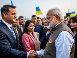 1 / 10प्रधानमंत्री नरेंद्र मोदी 23 अगस्त को अपनी ऐतिहासिक यात्रा के दौरान यूक्रेन पहुंचे। 2 / 10यूक्रेन में भारतीय मूल के लोगों ने पीएम मोदी का गर्मजोशी से स्वागत किया। 3 / 104 / 10पीएम मोदी अपनी ऐतिहासिक यात्रा के दौरान यहां महात्मा गांधी की प्रतिमा पर पुष्पांजलि भेंट की। 5 / 10पीएम मोदी ने कीव में यूक्रेन के राष्ट्रपति वोलोदिमर ज़ेलेंस्की से मुलाकात की और उनके गले लगे। 6 / 10पीएम मोदी ने कहा, 'भारत इस युद्ध में कभी भी तटस्थ नहीं रहा, हम शांति के पक्ष में हैं।'7 / 10उन्होंने संघर्ष को हल करने के लिए बातचीत और कूटनीति की वकालत करने के भारत के लगातार प्रयासों पर प्रकाश डाला।8 / 10युद्धग्रस्त देश के शहीद प्रदर्शनी का दौरा करते समय प्रधानमंत्री मोदी का हाथ ज़ेलेंस्की के कंधे पर मजबूती से टिका रहा।9 / 10पीएम मोदी और यूक्रेन के राष्ट्रपति वोलोदिमर ज़ेलेंस्की ने युद्ध मे मारे गए बच्चों को श्रृद्धांजलि अर्पित की। 10 / 10प्रधानमंत्री नरेंद्र मोदी ने यूक्रेनी राष्ट्रपति वोलोडिमिर ज़ेलेंस्की को भारत आने का निमंत्रण दिया है।