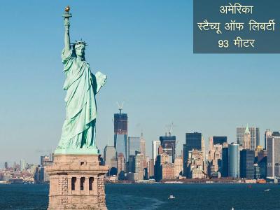 स्टैच्यू ऑफ लिबर्टी: अमेरिका के न्यूयार्क में साल 1886 से स्थापित इस मूर्ति की ऊंचाई 93 मीटर है।